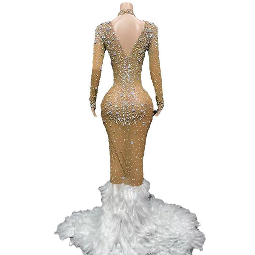 Women's Shiny Diamond Backless Elegant Long Sleeve Dress