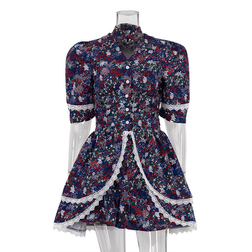 Women's Printed Wear Short Sleeve Halter Dress