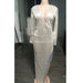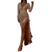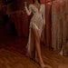Deep V Long Sleeve Side Split Sexy Asymmetrical Dress