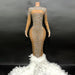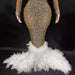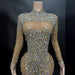 Women's Shiny Diamond Backless Elegant Long Sleeve Dress
