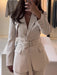 Elegant Solid Color Belted Blazer & High Waist Pants Set