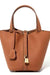 Ein besonderes Highlight ist das markante Schlossdetail an der Front, das sowohl dekorativ als auch funktional wirkt. Die verstärkten Henkel sorgen für angenehmen Tragekomfort, während die präzise gesetzten Nähte handwerkliche Qualität unterstreichen. Dank des offenen Designs mit Riemenverschluss bleibt der Inhalt sicher, aber leicht zugänglich.
